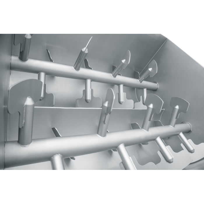 工作原理:采用雙軸橢圓比螺旋布置的扇形漿葉,對物料進行徑向攪拌,同時完成軸向回流,使物料以得充分混合均勻,達到理想的混合效果。
