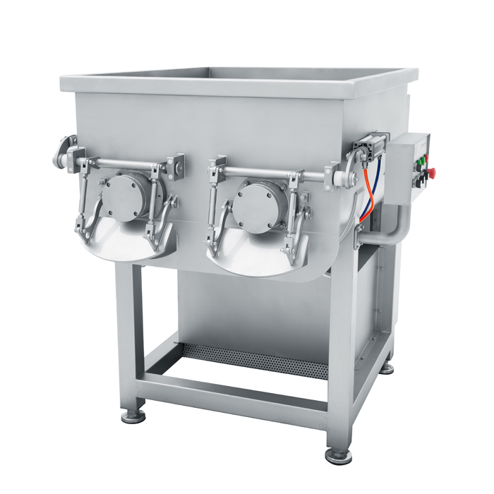 我公司生產的食品攪拌機是參照國際同類產品的特點,同時結合我國肉制品加工工藝特點,自行研制開發(fā)而成的新一代產品。是用于混料的必備設備,效率高,便于操作,真正實現了物料攪拌的均勻,膨脹充分,彈性好,色澤鮮艷并較大限度地提取蛋白質多種功能,適合各種工藝要求,是制作風干腸類產品、粒狀、泥狀混合腸類產品、丸類產品的選用設備。