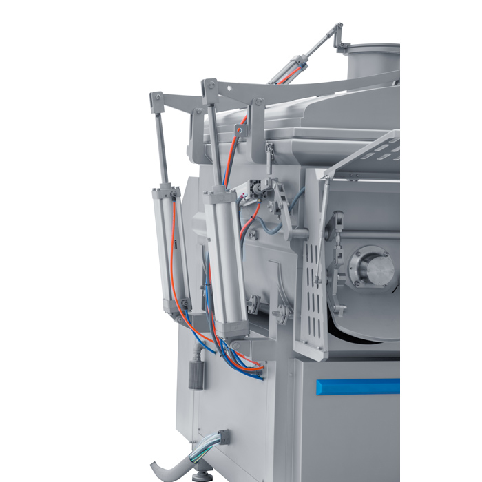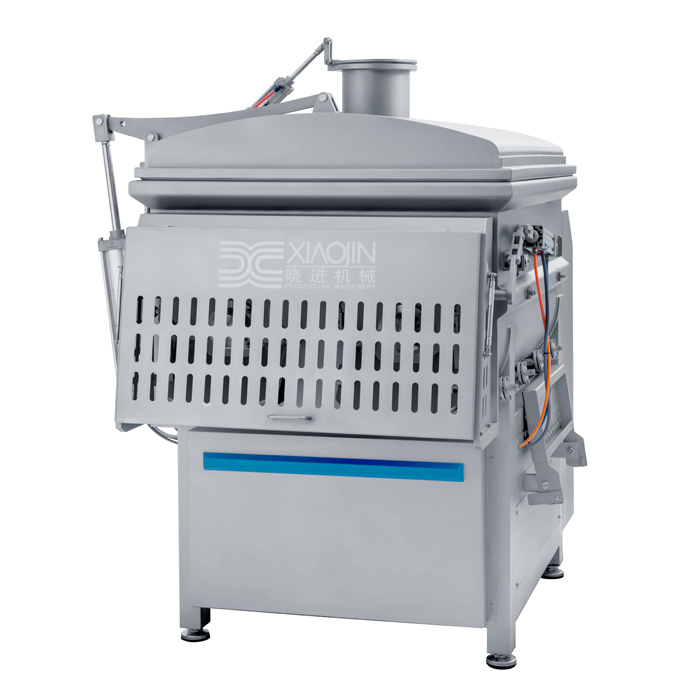JBZL750真空制冷攪拌機(jī),是在原真空攪拌機(jī)的基礎(chǔ)上引進(jìn)國際技術(shù)水平而改進(jìn)的新型攪拌機(jī)。在真空的狀態(tài)下,物料被負(fù)壓后膨脹同時(shí)被槳葉進(jìn)行徑向翻滾、軸向回流,完成混合均勻的攪拌功能,達(dá)到理想的攪拌效果,同時(shí)采用獨(dú)特的攪拌器,使拌出的肉餡纖維細(xì)化,并使肉纖維間的動(dòng)物蛋白能游離析出,以保證肉餡拌和均勻并使之呈現(xiàn)蓬松狀態(tài),加入的調(diào)味汁液能充分吸收飽和,以保持餡料的松、鮮、嫩、口感味道優(yōu)異的特點(diǎn)。是肉類生產(chǎn)中常用的設(shè)備之一,同時(shí)也是各類速凍水餃、包子、混沌等面食加工廠的理想設(shè)備。