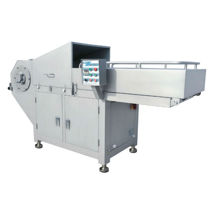 2、設(shè)計合理,每塊2.5-25kg、-4 ~ -18℃的凍板肉,凍肉規(guī)格可以是在長×寬×高=700×520×200(mm)之內(nèi)的任意大小,可快速直接切成塊狀或片狀,是斬拌機(jī)和絞肉機(jī)的前道工序;